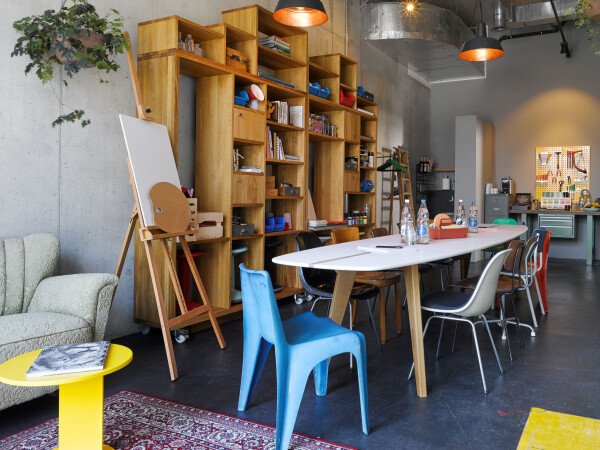 - Das Atelier liegt direkt neben der Cinchona Bar. Wie es der Name schon verrät ist es das künstlerische Herz vom Hotel. Wir unterstützen junge Künstler mit dem Projekt Artist in Residence, welche gegen Kost und Logis bei uns arbeiten und das Atelier durch Veranstaltungen wie Künstlergespräche, Performances oder Präsentationen zum Kunstraum werden lassen. Das Atelier hat die perfekte Grösse für kleinere Meetings und Get togethers sowie Produktpräsentationen. Steter Begleiter im kreativen Raum ist eine Werkbank, sowie der Tisch (von Hand gefertigtes Surfbrett).