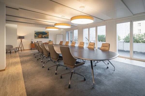 - Unser Signature-Boardroom für bis zu 14 Personen, mit einem grossen Boardroom-Tisch und Zugang zu einem privaten Bereich auf der prächtigen Terrasse – der perfekte Ort, um die nächste Milliarden-Idee zu entwickeln und gleich darauf darauf anzustossen.