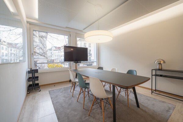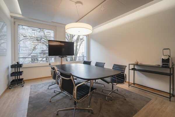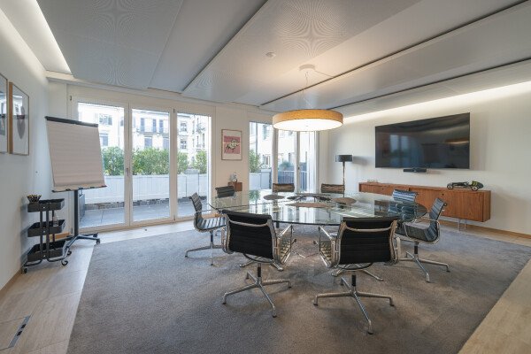 - Ein eleganter Raum für sechs Personen, entworfen für fokussierte Diskussionen, grosse Entscheidungen und Gespräche, die den Markt bewegen.