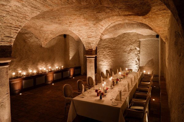 - Der Chef’s Table, das historische Herzstück des Grand Hotel Les Trois Rois, befindet sich in einem verborgenen Gewölbekeller aus dem 18. Jahrhundert. Umgeben von ehrwürdigen Mauern schafft dieser Raum eine einzigartige Atmosphäre, die durch Blumen und Kerzen perfekt zur Geltung kommt.