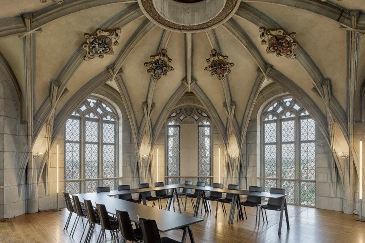 Beste Aussichten: Bei einem Teamevent im höchsten Kirchenturm der Schweiz. Seit dem Umbau der ehemaligen Turmwohnung im Berner Münster können der kleine Raum (bis 8 Personen) und der grosse Gewölbesaal (bis 50 Personen) für Sitzungen, Seminare, Events oder Apéros gemietet werden. Die Location in luftiger Höhe und mit einmaliger Aussicht über die Dächer der UNESCO-Altstadt Bern erschliesst sich – auch dies etwas ganz Besonderes – ausschliesslich zu Fuss über 222 Treppenstufen. Die Räume sind mit modernster Infrastruktur ausgestattet und können auf Wunsch mit einem Catering ergänzt werden. Mehr dazu