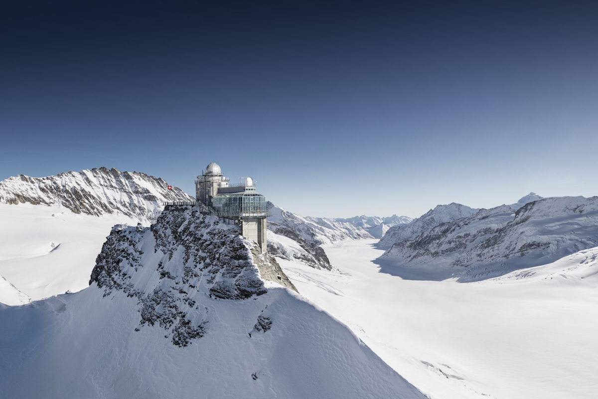 Es geht noch höher: Auf 3'454 Metern über Meer liegt das Jungfraujoch – Top of Europe. Dank dem neuen Eiger Express von Grindelwald Terminal via Eigergletscher, gestaltet sich die Anreise zu dieser einzigartigen, eisig-funkelnden Bergwelt noch komfortabler. Oben angekommen gibt’s ein Welcome Drink in der Eisbar inmitten des grandiosen Eispalastes und ein Curling-Plausch (bis 20 Personen). Anschliessend laden verschiedene Erlebnismöglichkeiten zum Verweilen ein und auch die Sphinx-Terrasse bietet beste Aussichten! Mehr dazu