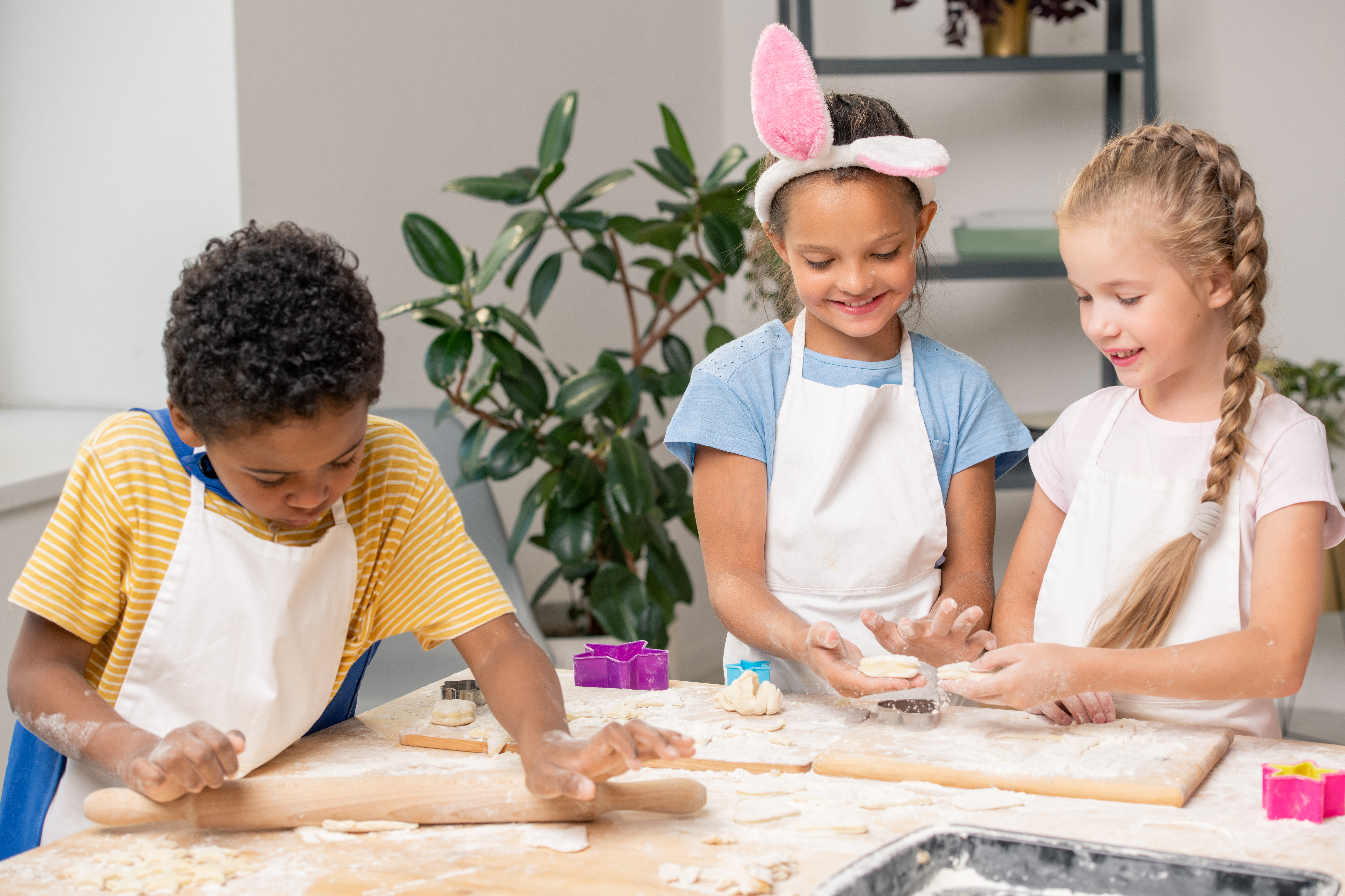 Eine schöne Variante den Osterschmaus zu erweitern, ist gemeinsames Backen. Gut geeignet ist zum Beispiel alles mit Hefeteig. Dieser lässt sich gut auch am Vortag schon vorbereiten, sodass am Osterevent nur noch geformt, dekoriert und gebacken werden kann. Jeder erhält einen vorportionierten Teig und formt daraus sein eigenes Osterbrötchen. Ob das nun ein Hase, ein Huhn, ein klassisches Brötchen oder etwas ganz anderes wird, ist dabei völlig frei. Ein paar Rosinen, Hagelzucker, Schokowürfeli oder ähnliches zur Dekoration und schon schmücken vielfältige Brötchen eure Ostertafel.