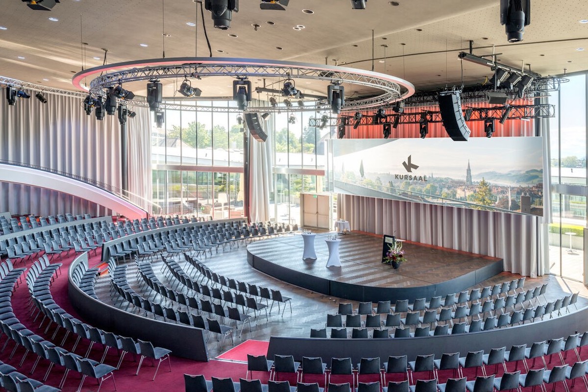 Wer gerne Stadtluft schnuppert und Events «with a view» geniesst, dürfte im Kursaal Bern richtig sein. Das Konferenzzentrum mit 28 Räumlichkeiten für bis zu 1500 Personen ist schweizweit eine führende Adresse für Kongresse und Meetings. Zentral gelegen und einfach erreichbar bietet das 4-Sterne-Superior-Hotel mit 171 Zimmern alles, was das Herz begehrt. Und nach der Arbeit: das Vergnügen. Im Grand Casino an der Cocktail Bar oder in einem der zwei Restaurants lässt man den Abend angemessen ausklingen. Wer an einem freien Abend die Schweizer Bundesstadt erkunden mag, ist in 5 Gehminuten mitten im Stadtzentrum. Mehr dazu