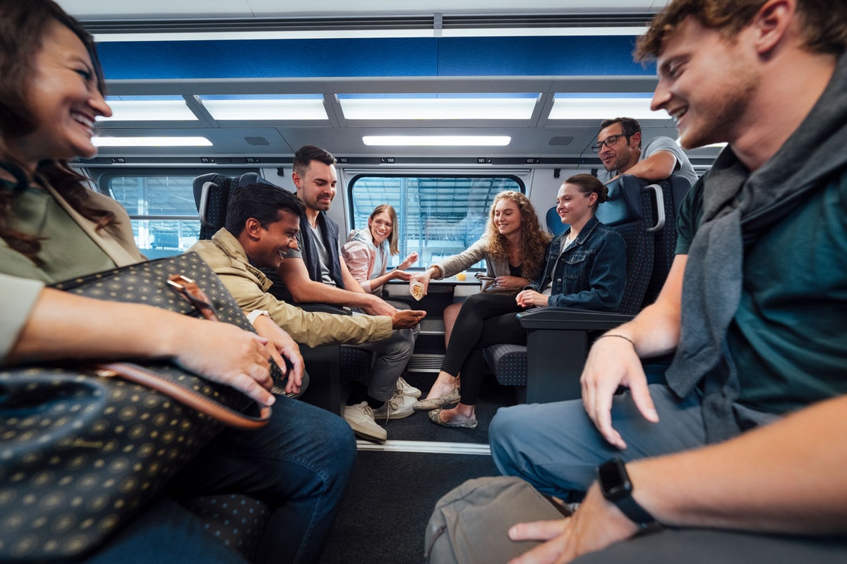 Mit dem Gruppenbillett reist ihr nicht nur günstiger, sondern auch komfortabler. In den Fernverkehrszügen werden euch Sitzplätze reserviert. So bleibt deine Gruppe zusammen und kommt sicher und voller Vorfreude am Event an. Mehr erfahren